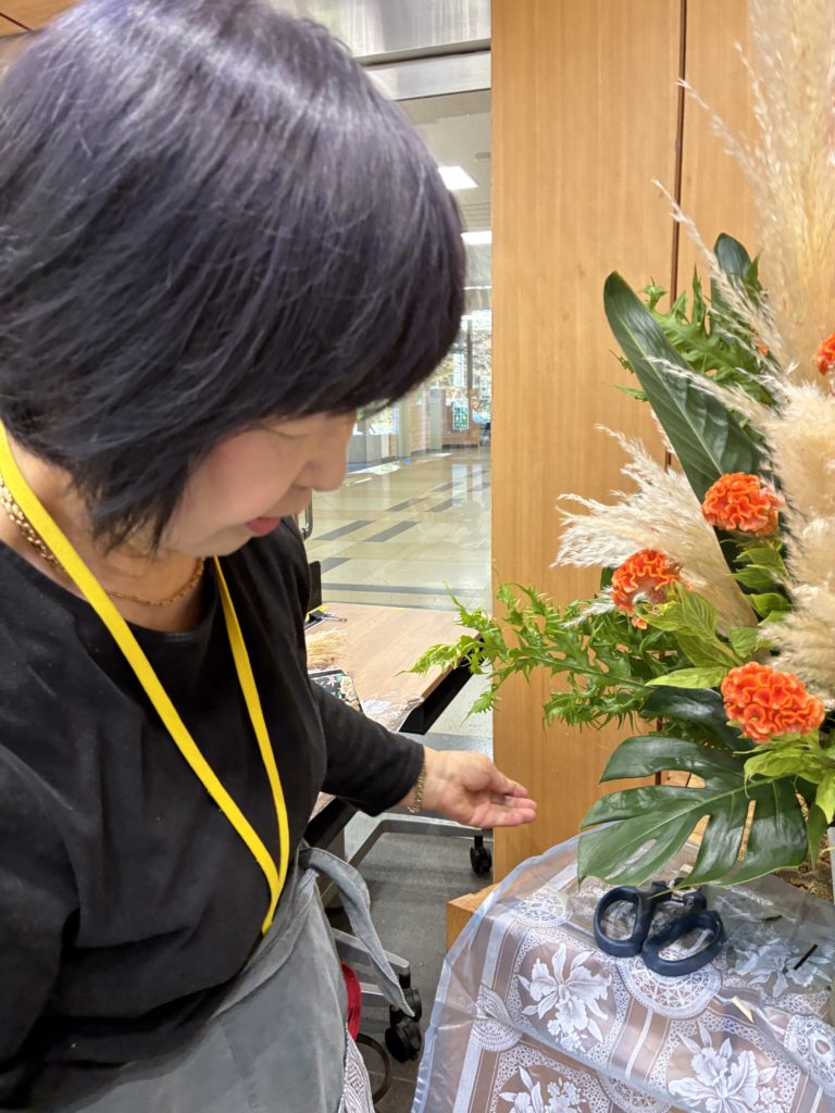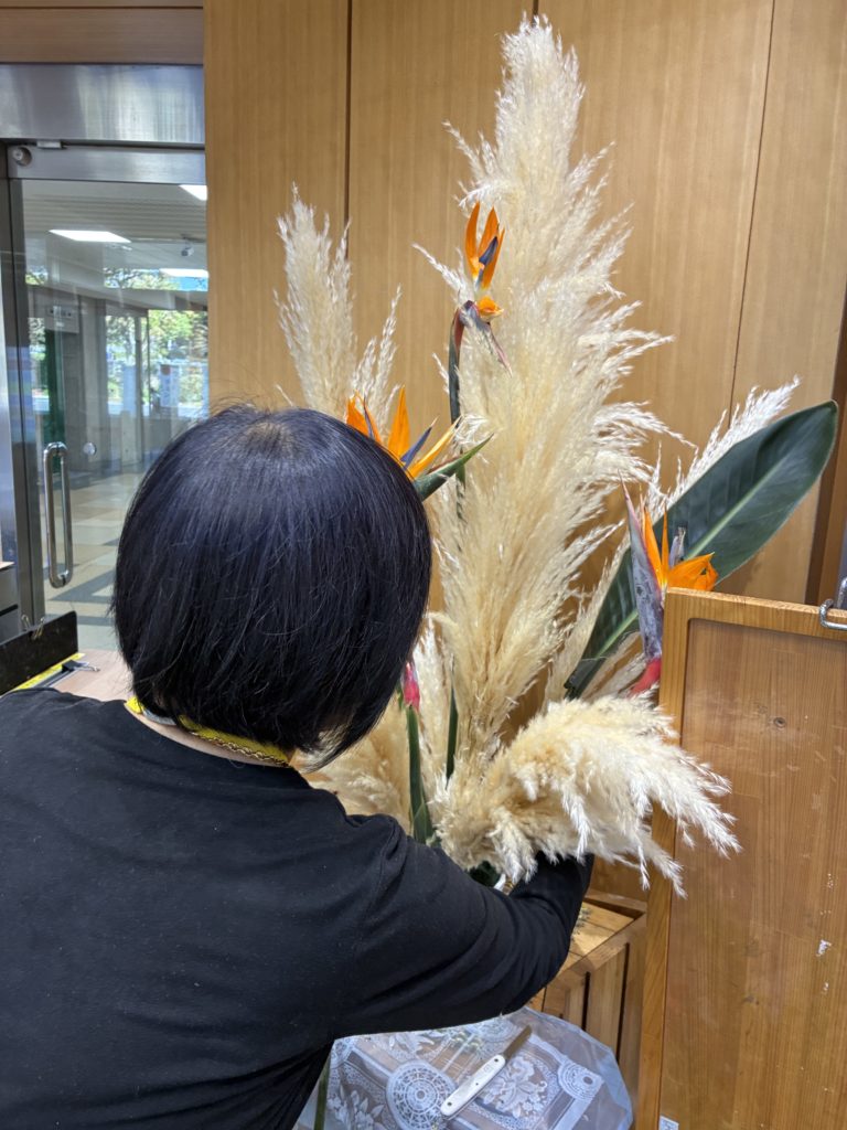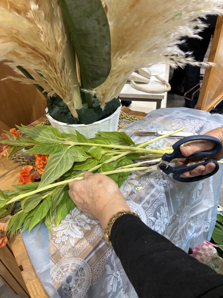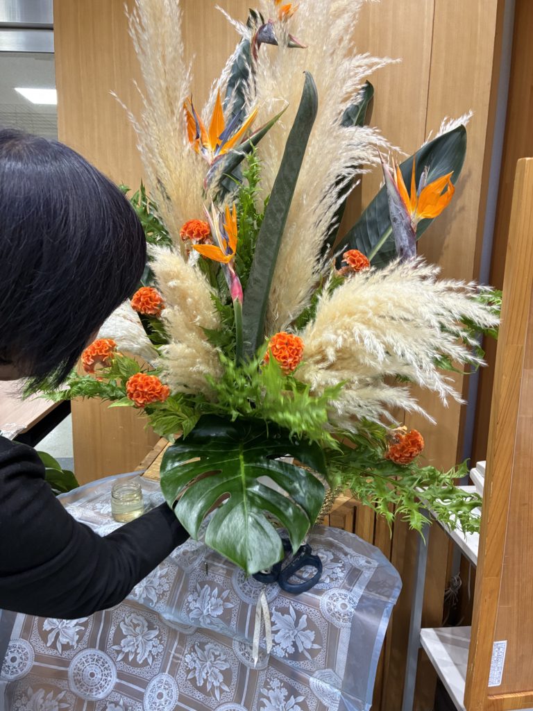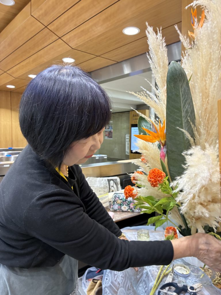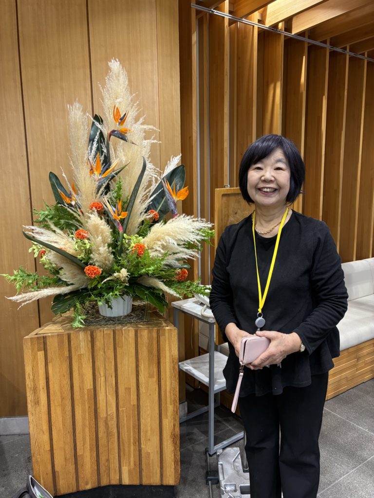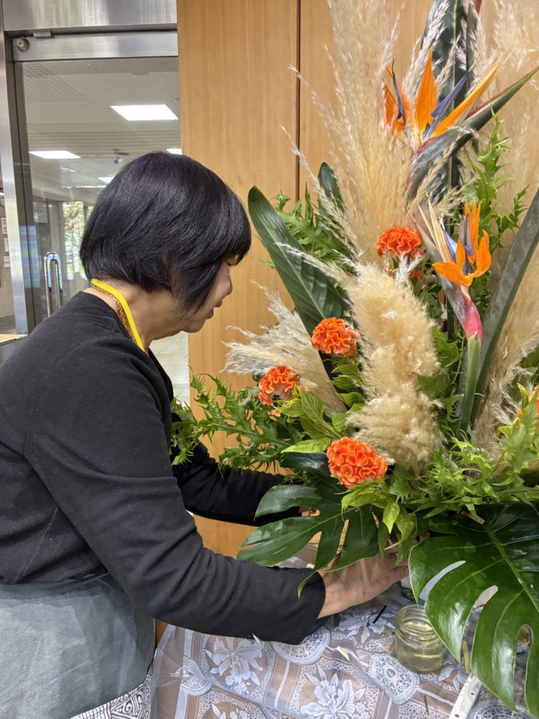 (先生はフラワーアレンジだけでなく、小原流の生け花の先生、流行りの「二刀流」です。)