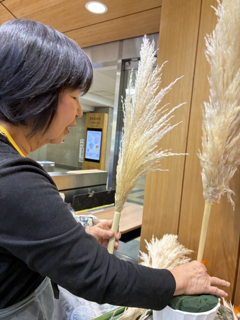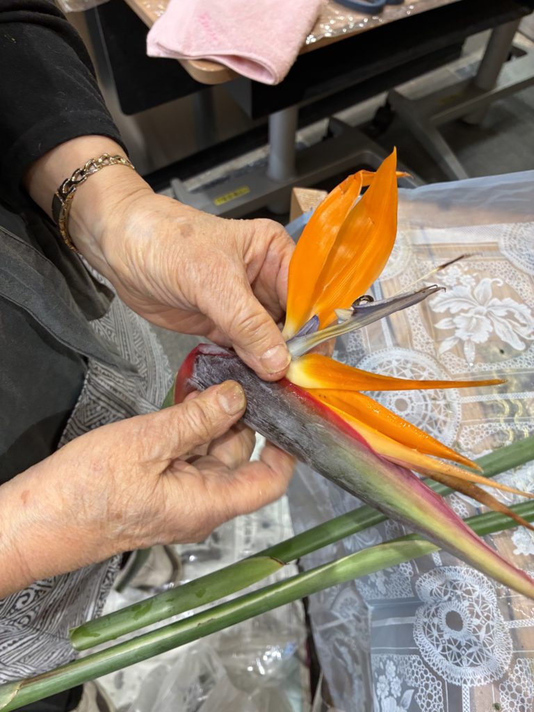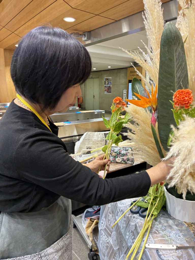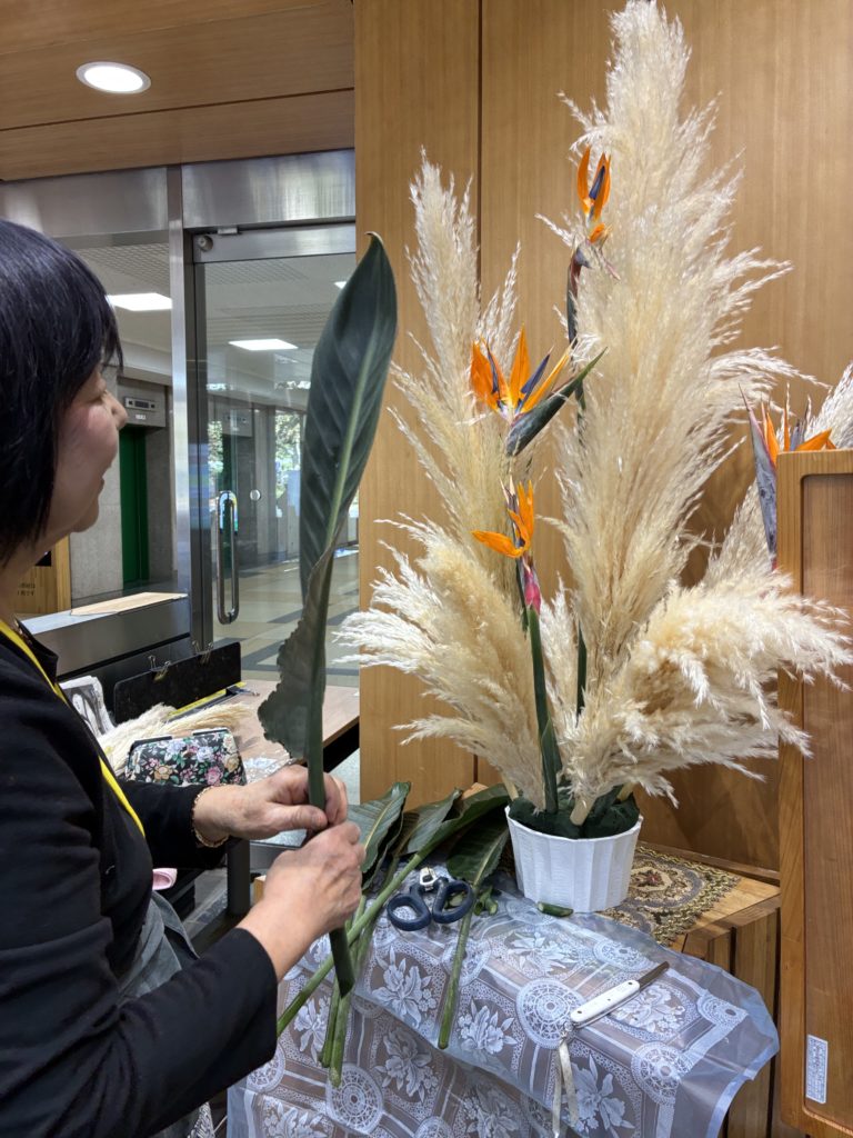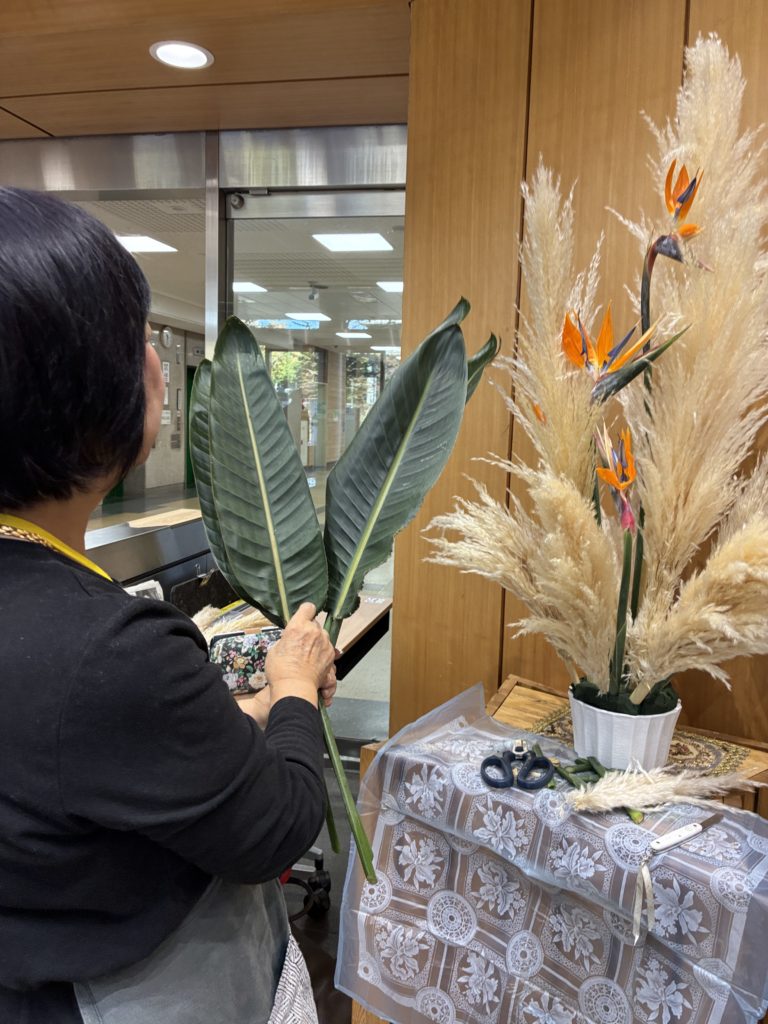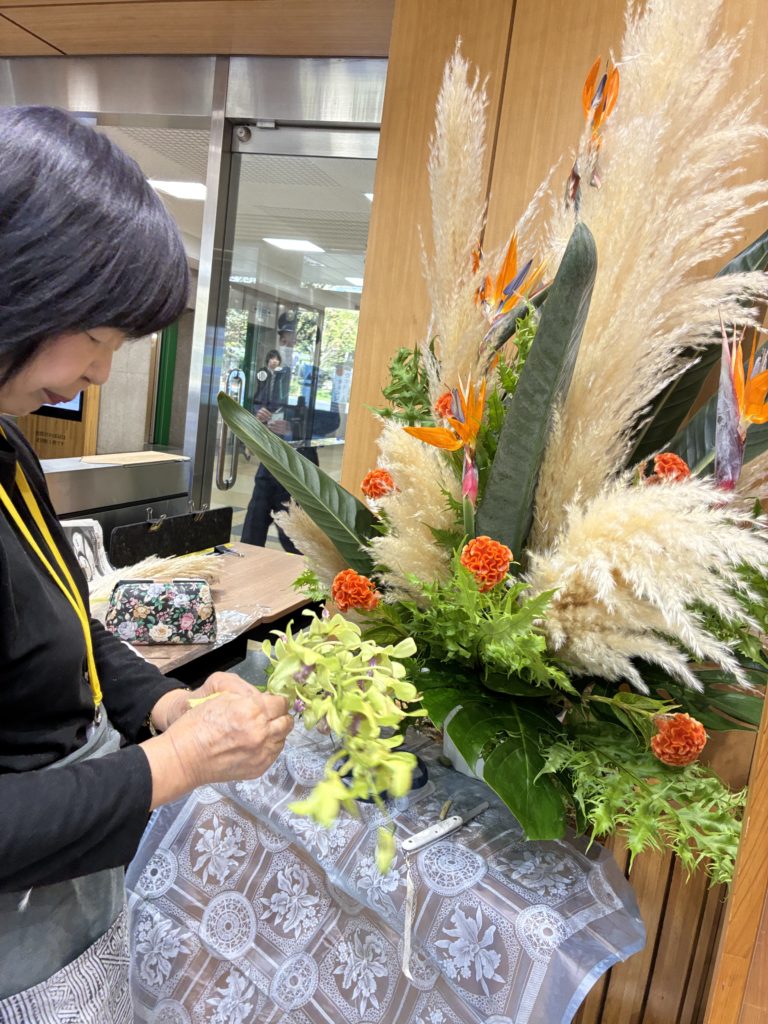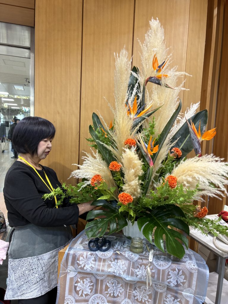 (先生はフラワーアレンジだけでなく、小原流の生け花の先生、流行りの「二刀流」です。)