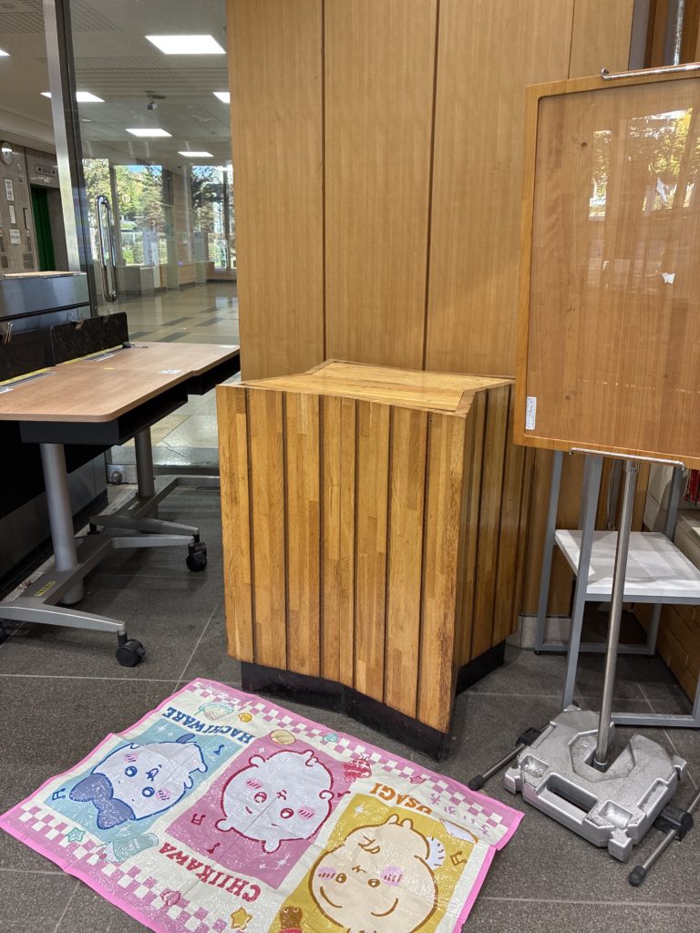 手前に敷いてある先生持参の「ちいかわ」のレジャーシートがかわいい。