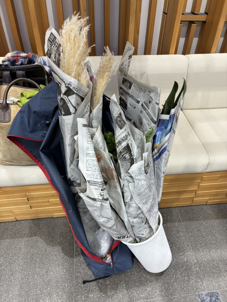 大きなアレンジをするので大荷物です、お疲れ様です。汗