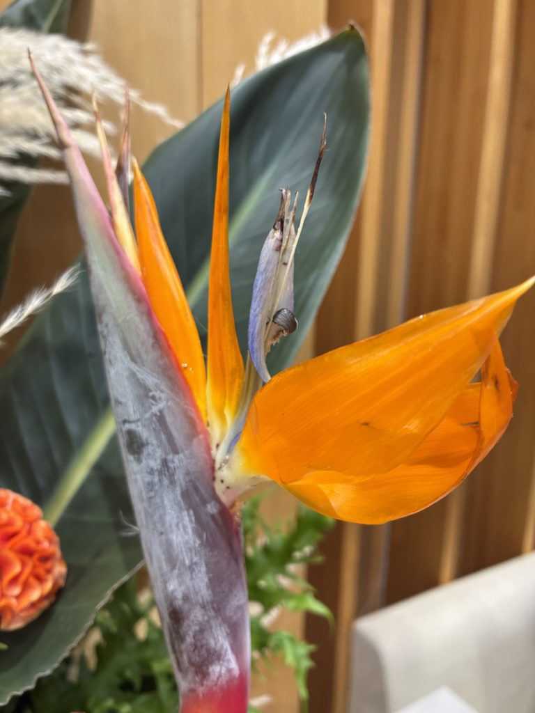 「ストレリチア」のオレンジと、「久留米けいとう」オレンジをあわせた!