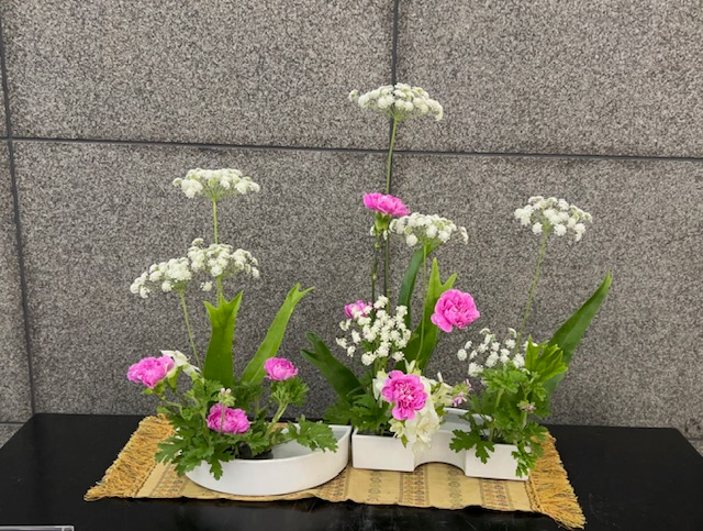 その一方、人生100年時代「いけばな経験者向けのフラワーアレンジメント教室」(お喋り付き)を